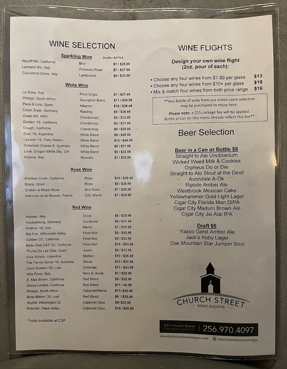 Experience the vibrant atmosphere at Church Street Wine Shoppe—a true hidden gem in the heart of Huntsville!